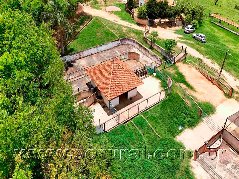 * Sede cercada , árvores frutíferas, canil, viveiro.